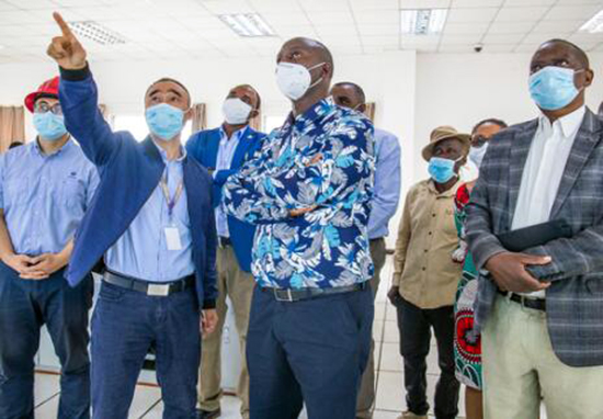 贊比亞當(dāng)?shù)貢r間4月30日上午9時,公司在贊比亞出資企業(yè)中色非洲礦業(yè)有限公司(簡稱:中色非礦)“方舟”社區(qū)迎來了特殊的疫情防控“測溫員”。贊比亞礦業(yè)部長Richard Musukwa及隨同的穆府里拉(Mufulira)、地區(qū)議員 Evans Chibanda、卡魯魯西市長 Rashida Mulenga、卡魯魯西地區(qū)專員 Kenny Siachisumo和當(dāng)?shù)刂髁髅襟w記者等一行,到訪了中色非礦公司“方舟”社區(qū)。先后參觀了東南礦體培訓(xùn)學(xué)校、合作區(qū)廠房、東南采礦服務(wù)樓、綜合樓及中色地勘員工住宿點(diǎn),與住贊方員工進(jìn)行了交流,并聽取了中色非礦公司疫情防控工作專項(xiàng)匯報(bào)。他說:“中色非礦公司起到了很好的表率作用,為贊比亞礦業(yè)在疫情期間克服穩(wěn)產(chǎn)遇到的一系列困難提供了參考”,“good and very good!”部長Richard Musukwa還自帶測溫儀,給大家檢測。
