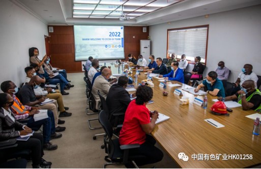 徐和麟董事長首先對Dolika女士任職ZCCM-IH董事長表示祝賀,對ZCCM-IH高管團隊蒞臨中色非洲礦業(yè)考察交流表示最誠摯的歡迎,同時簡要介紹了中色非洲礦業(yè)2021年生產經營概況和2022年發(fā)展建設規(guī)劃。